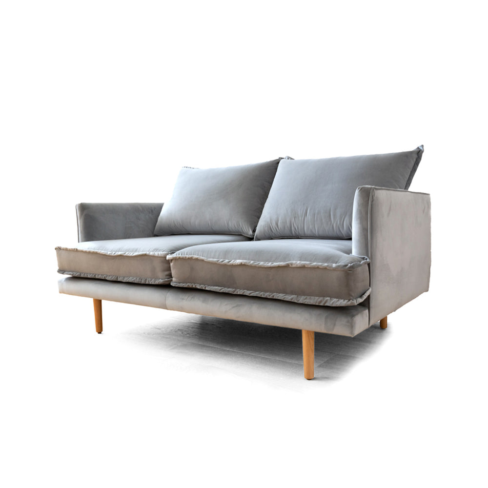 The Cali Sofa with its petite flanged edge detail on seat and back cushions boasts tapered round scandinavian inspired polished hardwood timber legs are available in 7 timber stains.