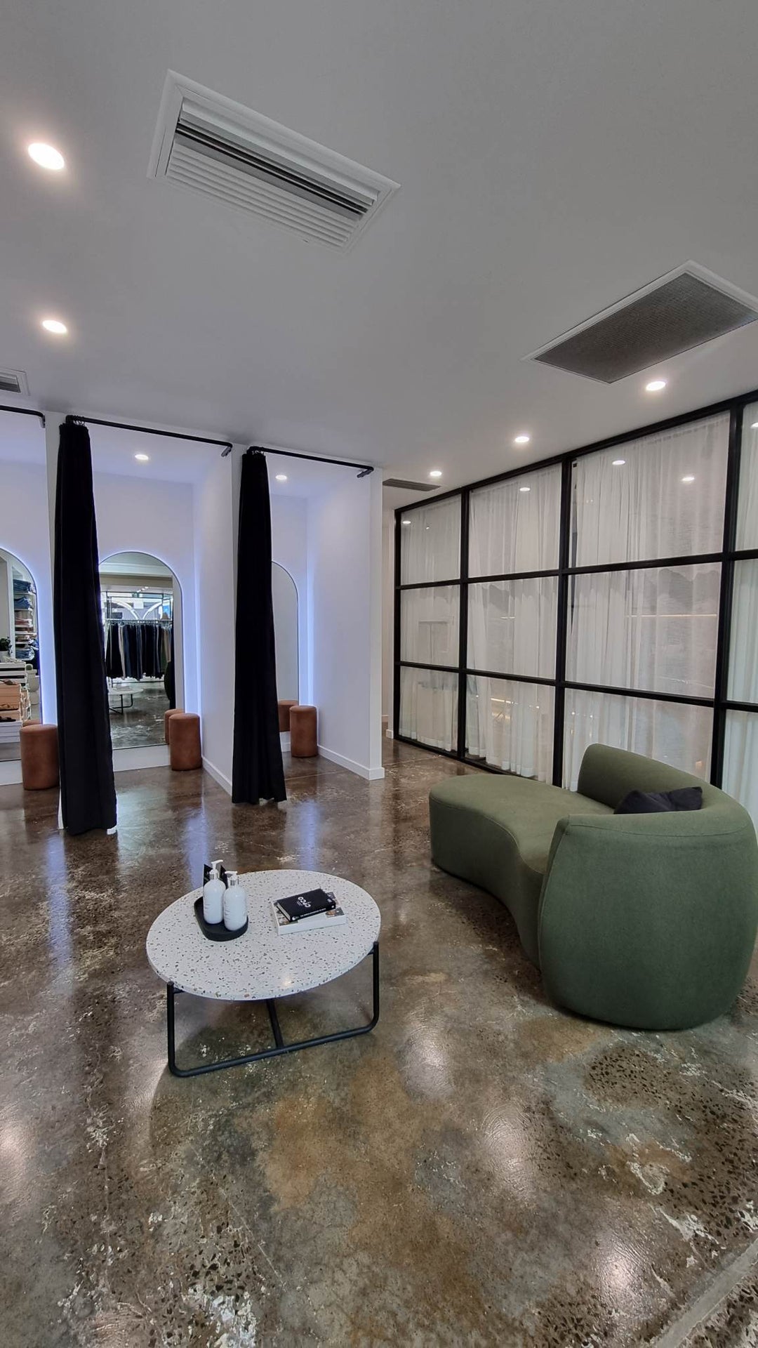 We worked closely with the owner of Jan n Jean to make her store vision a reality. This involved creating a comprehensive design plan, collaborating with various trades, creating custom furniture, suppling and installing mirrors, ottomans, and furniture for the store in addition to installing elegant drapery for the store's studio and dressing room.